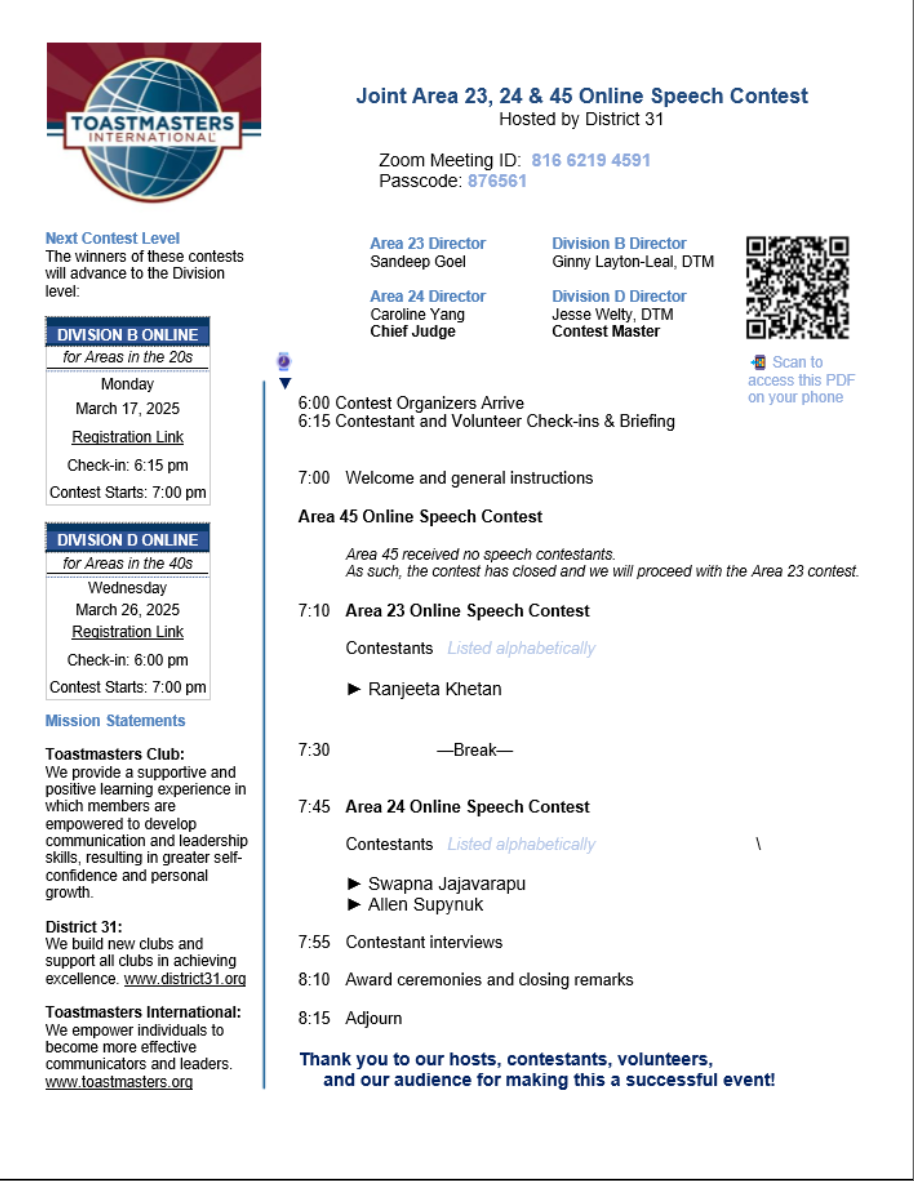 Official Toastmasters speech contests all follow the same set of rules. Judging is performed by a secret panel, but you can judge along for your own enjoyment using these sample ballots!